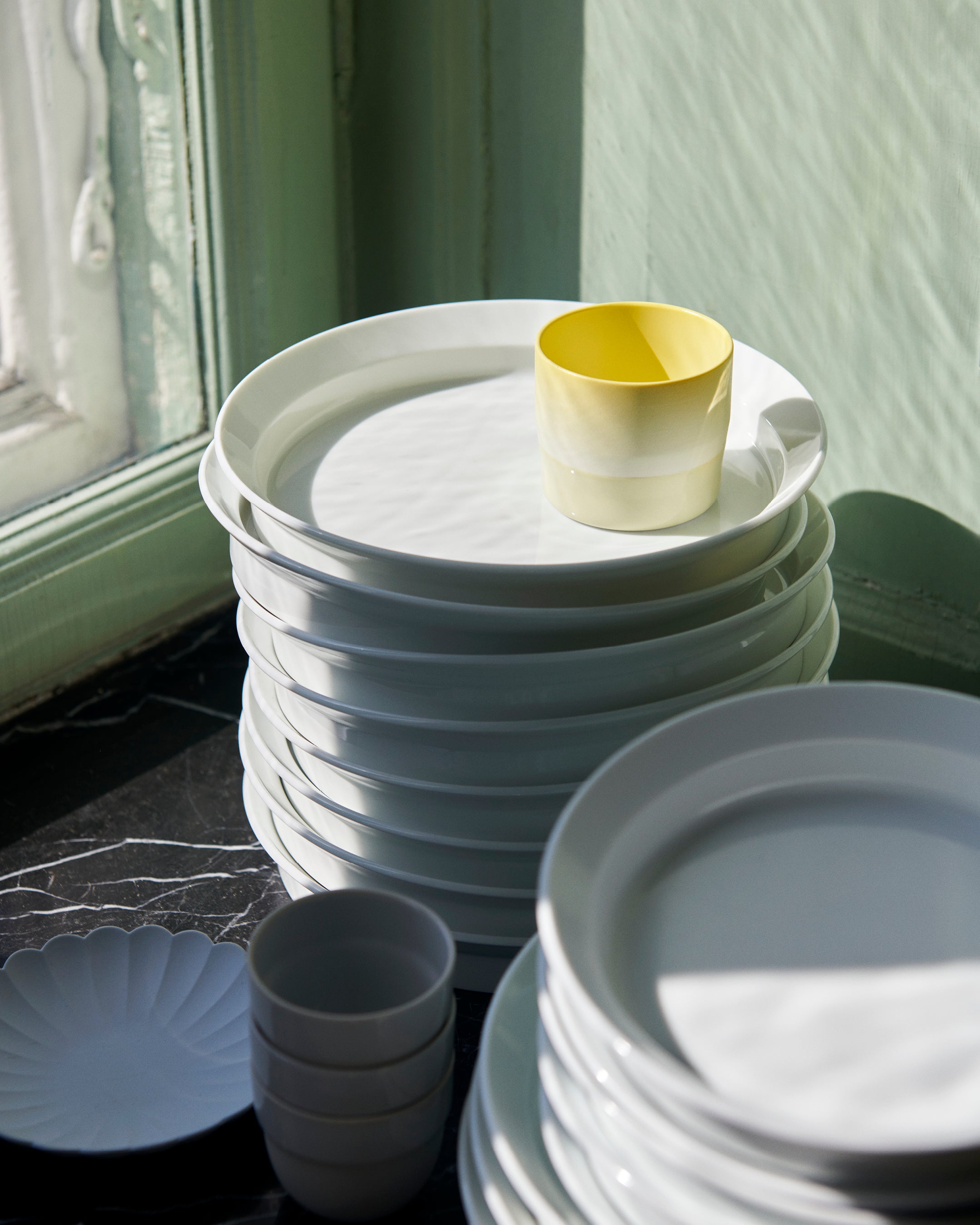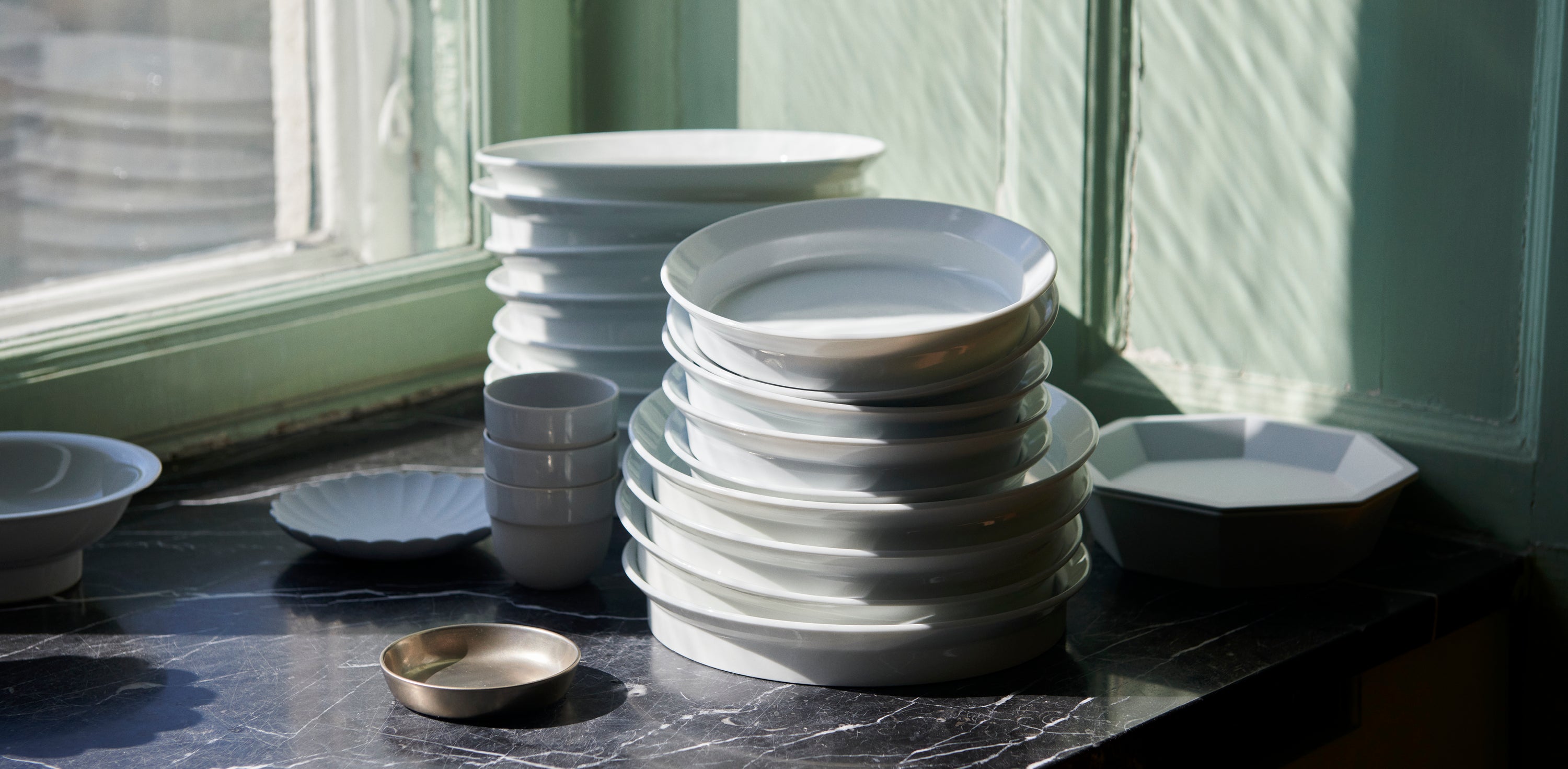 The table is set. Almost exclusively with fine Japanese wares. Take a seat. Eat and drink. The 1616 / arita porcelain pieces are cool to the touch and easy on the eyes. More courses to come in the feast. Lick the plates clean!
